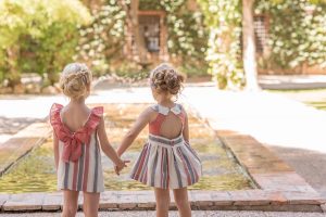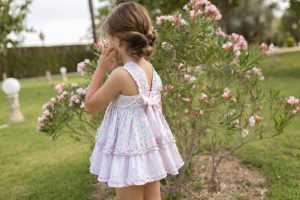 Vestido tirante floral volantes/rayas lazo espalda Dolce Petit.