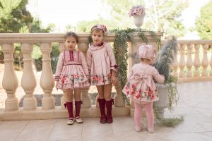 Vestido tirante jacquard rosa detalles chocolate bebé