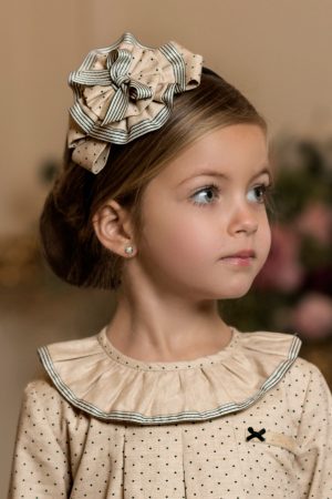 Vestido villela beige topitos pliegue delantero Dolce Petit.