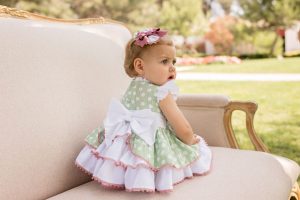 Vestido/capota/braguita plumeti verde topos bebé Dolce Petit
