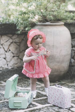 Vestido/capota/braguita plumeti coral puntilla tricolor Dolce Petit.